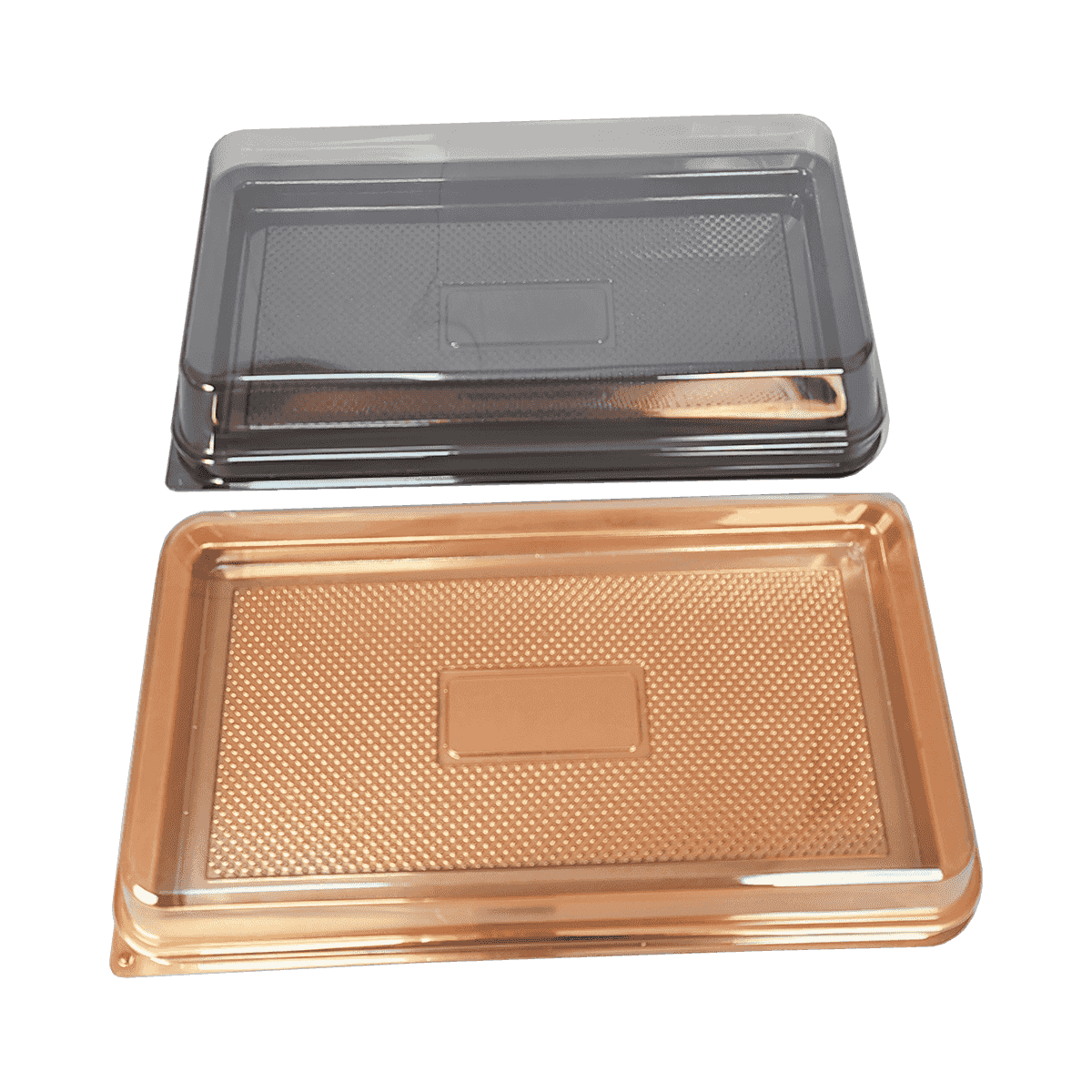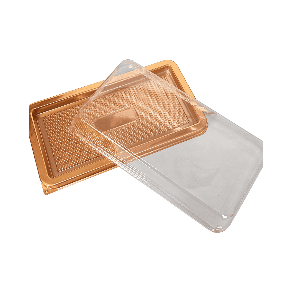 ZK-PET-044一次性金色PET食品包裝容器適用于外賣甜點、水果和面包,符合嚴格的健康和安全標準。所用材料100%食品安全,無毒,不會將任何化學物質滲入儲存在里面的食物中。